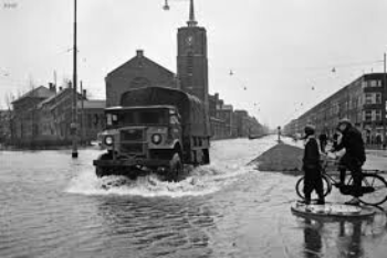 Het water steeg en overspoelde een groot deel van Zuidwest Nederland. Een felle storm joeg door de straten, ontwortelde bomen, de mensen schuilden bij elkaar. Laat op de avond, toen men ging beseffen dat het weleens goed mis kon gaan, zei mijn moeder “Ik loop naar de Balsemienstraat om te kijken of alles goed is met mijn ouders en Cor.” “Ben je helemaal besodemieterd? De takken vliegen om je hoofd en het water stijgt.”” Toch ga ik ernaar toe.” “Dan ga ik met je mee. Pa kan op Joke passen.”